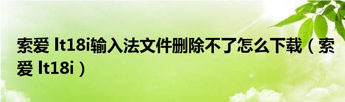 大家好,来宝来为大家解答以下问题,索爱 lt18i输入法文件删除不了怎么下载,索爱 lt18i很多人还不知道,今天让我们一起来看看吧!