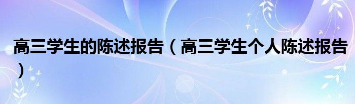 关于高三学生的陈述报告,高三学生个人陈述报告这个很多人还不知道,今天菲菲来为大家解答以上的问题,现在让我们一起来看看吧!