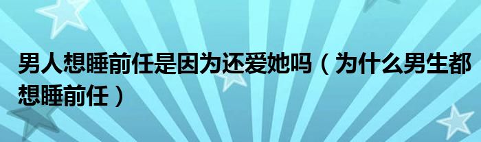 大家好,小晋来为大家解答以下问题,关于男人想睡前任是因为还爱她吗,为什么男生都想睡前任很多人还不知道,今天让我们一起来看看吧!