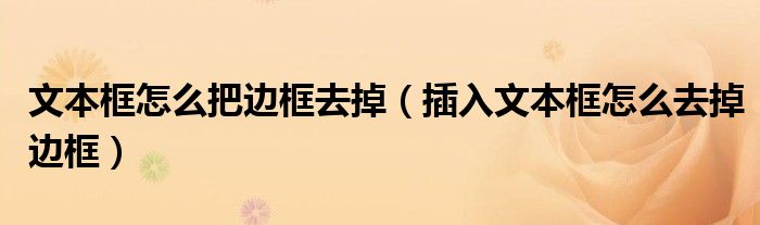 关于文本框怎么把边框去掉,插入文本框怎么去掉边框这个很多人还不知道,今天菲菲来为大家解答以上的问题,现在让我们一起来看看吧!