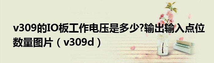 大家好,来宝来为大家解答以下问题,v309的IO板工作电压是多少?输出输入点位数量图片,v309d很多人还不知道,今天让我们一起来看看吧!