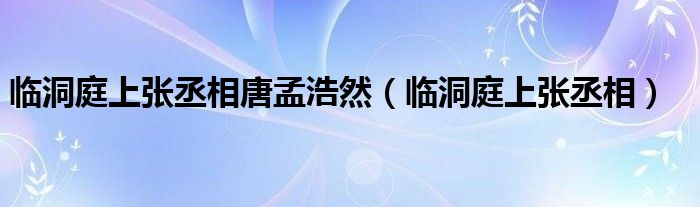 大家好,小晋来为大家解答以下问题,关于临洞庭上张丞相唐孟浩然,临洞庭上张丞相很多人还不知道,今天让我们一起来看看吧!