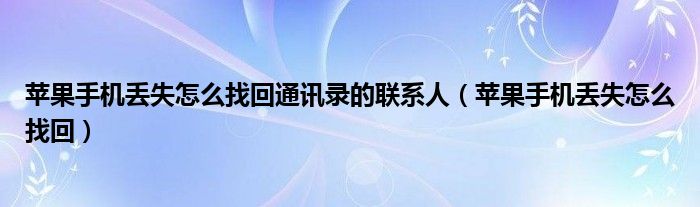 大家好,来宝来为大家解答以下问题,苹果手机丢失怎么找回通讯录的联系人,苹果手机丢失怎么找回很多人还不知道,今天让我们一起来看看吧!