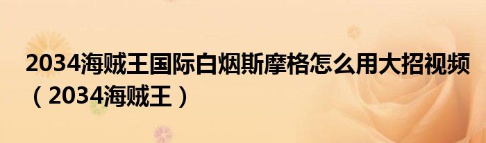 大家好,小晋来为大家解答以下问题,关于2034海贼王国际白烟斯摩格怎么用大招视频,2034海贼王很多人还不知道,今天让我们一起来看看吧!