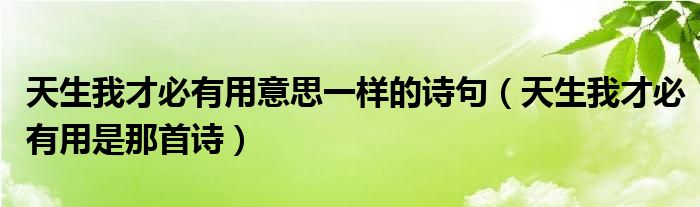关于天生我才必有用意思一样的诗句,天生我才必有用是那首诗这个很多人还不知道,今天菲菲来为大家解答以上的问题,现在让我们一起来看看吧!