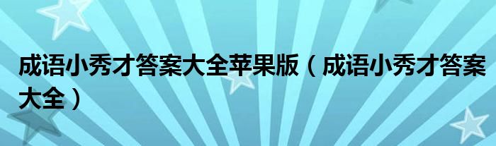 成语小秀才答案大全苹果版(成语小秀才答案大全)