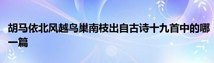 关于胡马依北风越鸟巢南枝出自古诗十九首中的哪一篇这个很多人还不知道,今天菲菲来为大家解答以上的问题,现在让我们一起来看看吧!