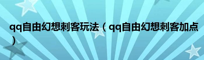 关于qq自由幻想刺客玩法,qq自由幻想刺客加点这个很多人还不知道,今天菲菲来为大家解答以上的问题,现在让我们一起来看看吧!