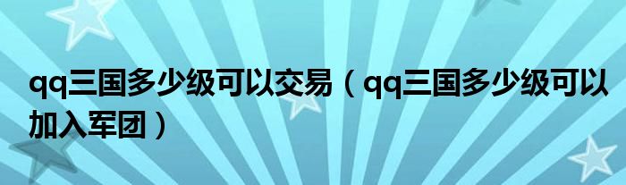qq三国多少级可以交易,qq三国多少级可以加入军团这个很多人还不知道,小飞来为大家解答以上的问题。现在让我们一起来看看吧!