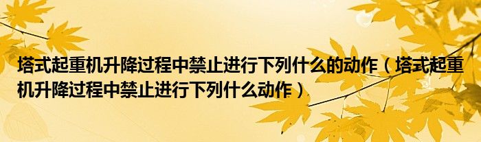 塔式起重机升降过程中禁止进行下列什么的动作,塔式起重机升降过程中禁止进行下列什么动作这个很多人还不知道,小飞来为大家解答以上的问题。现在让我们一起来看看吧!
