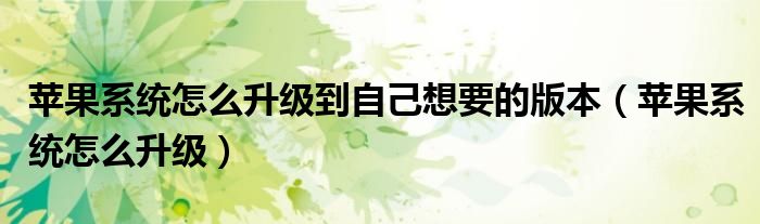 关于苹果系统怎么升级到自己想要的版本,苹果系统怎么升级这个很多人还不知道,今天菲菲来为大家解答以上的问题,现在让我们一起来看看吧!