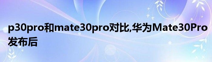 p30pro和mate30pro对比,华为Mate30Pro发布后