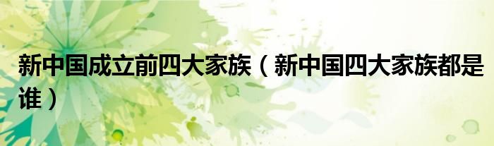 大家好,小晋来为大家解答以下问题,关于新中国成立前四大家族,新中国四大家族都是谁很多人还不知道,今天让我们一起来看看吧!