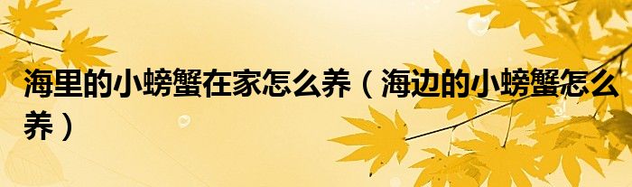 关于海里的小螃蟹在家怎么养,海边的小螃蟹怎么养这个很多人还不知道,今天菲菲来为大家解答以上的问题,现在让我们一起来看看吧!
