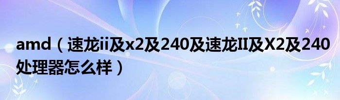 大家好,小常来为大家解答以上问题。amd,速龙ii及x2及240及速龙II及X2及240处理器怎么样很多人还不知道,现在让我们一起来看看吧!