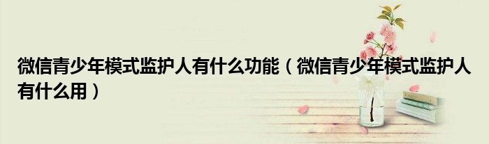 目前微信青春模式已经支持添加和设置监护人。成为少年监护人后,可以设置相应的功能来决定少年的相关操作。微信守护模式有什么用?可能很多朋友还不知道。本文将介绍微信青春模式守护者的功能,感兴趣的朋友可以看看!