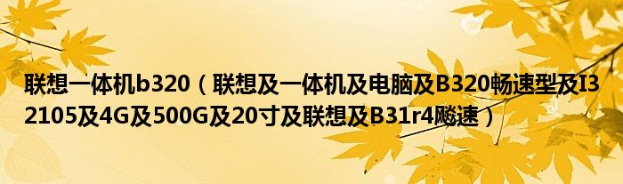 1,联想 一体机 电脑 B320畅速型 I32105 4G 500G 20寸 联想 B31r4飚速:飙速型的CPU好点性价比也不错