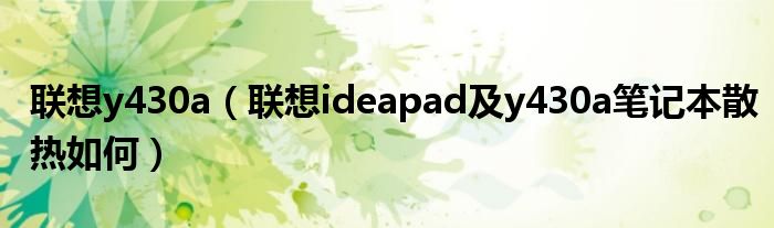 大家好,小常来为大家解答以上问题。联想y430a,联想ideapad及y430a笔记本散热如何很多人还不知道,现在让我们一起来看看吧!