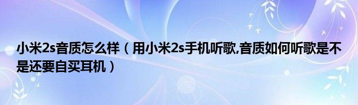 大家好,小常来为大家解答以上问题。小米2s音质怎么样,用小米2s手机听歌,音质如何听歌是不是还要自买耳机很多人还不知道,现在让我们一起来看看吧!