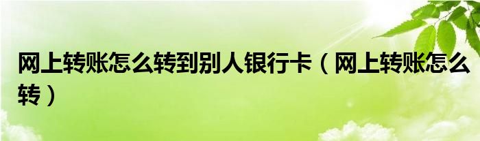 大家好,慧慧来为大家解答以上问题,网上转账怎么转到别人银行卡,网上转账怎么转很多人还不知道,现在让我们一起来看看吧!