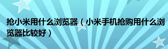 6,什么浏览器抢小米最好用uc浏览器好吗 :手机下载小米商城,传说中的抢机神器,电脑的话,主要是网络一定要好,想抢到最好多注册几个小米帐号,让朋友帮你抢,注意不要用同一网线,