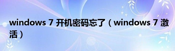大家好,慧慧来为大家解答以上问题,windows 7 开机密码忘了,windows 7 激活很多人还不知道,现在让我们一起来看看吧!