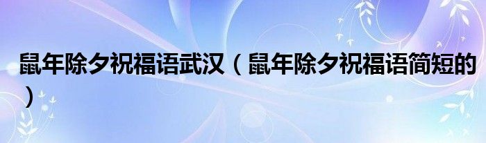 大家好,慧慧来为大家解答以上问题,鼠年除夕祝福语武汉,鼠年除夕祝福语简短的很多人还不知道,现在让我们一起来看看吧!