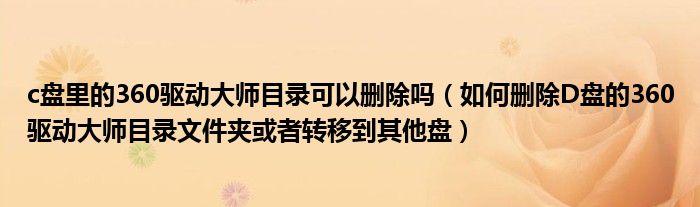 c盘里的360驱动大师目录可以删除吗(如何删除D盘的360驱动大师目录文件夹或者转移到其他盘)