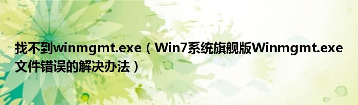 大家好,今天小悦来为大家解答以上问题。找不到winmgmt.exe,Win7系统旗舰版Winmgmt.exe文件错误的解决办法很多人还不知道,现在让我们一起来看看吧!