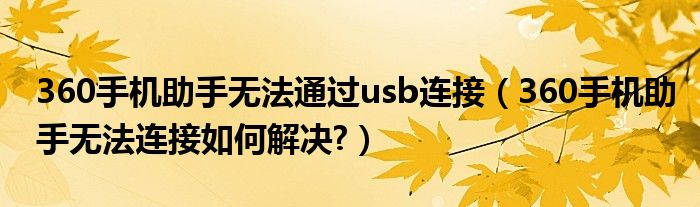 360手机助手无法通过usb连接(360手机助手无法连接如何解决?)