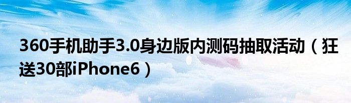大家好,今天小悦来为大家解答以上问题。360手机助手3.0身边版内测码抽取活动,狂送30部iPhone6很多人还不知道,现在让我们一起来看看吧!