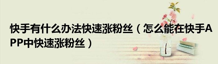 大家好,今天小悦来为大家解答以上问题。快手有什么办法快速涨粉丝,怎么能在快手APP中快速涨粉丝很多人还不知道,现在让我们一起来看看吧!