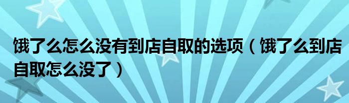 大家好,跳跳为你解答以上问题。饿了么怎么没有到店自取的选项,饿了么到店自取怎么没了这个问题很多人还不知道,现在让我们一起来看看吧!