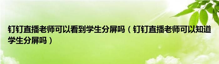 大家好,跳跳为你解答以上问题。钉钉直播老师可以看到学生分屏吗,钉钉直播老师可以知道学生分屏吗这个问题很多人还不知道,现在让我们一起来看看吧!
