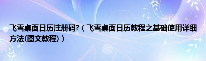 大家好,今天小悦来为大家解答以上问题。飞雪桌面日历注册码?,飞雪桌面日历教程之基础使用详细方法(图文教程)很多人还不知道,现在让我们一起来看看吧!