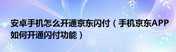 大家好,小太来为大家解答以上问题。安卓手机怎么开通京东闪付,手机京东APP如何开通闪付功能很多人还不知道,现在让我们一起来看看吧!