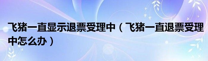 大家好,跳跳为你解答以上问题。飞猪一直显示退票受理中,飞猪一直退票受理中怎么办这个问题很多人还不知道,现在让我们一起来看看吧!