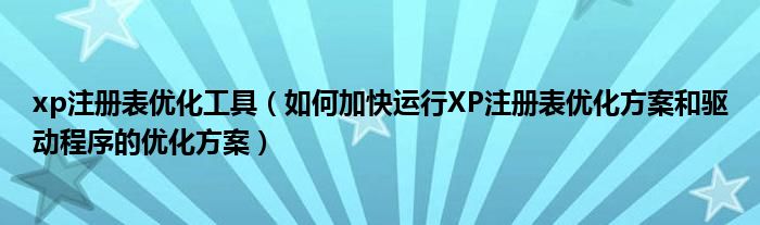 大家好,小太来为大家解答以上问题。xp注册表优化工具,如何加快运行XP注册表优化方案和驱动程序的优化方案很多人还不知道,现在让我们一起来看看吧!