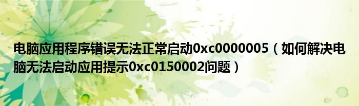 大家好,小太来为大家解答以上问题。电脑应用程序错误无法正常启动0xc0000005,如何解决电脑无法启动应用提示0xc0150002问题很多人还不知道,现在让我们一起来看看吧!