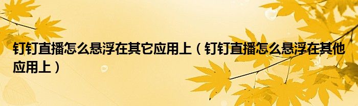 大家好,跳跳为你解答以上问题。钉钉直播怎么悬浮在其它应用上,钉钉直播怎么悬浮在其他应用上这个问题很多人还不知道,现在让我们一起来看看吧!