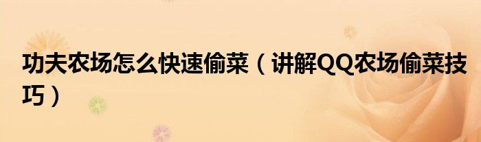 大家好,小太来为大家解答以上问题。功夫农场怎么快速偷菜,讲解QQ农场偷菜技巧很多人还不知道,现在让我们一起来看看吧!