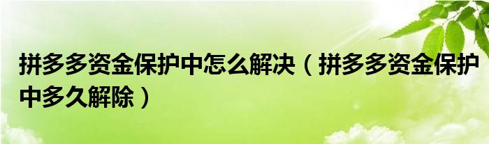 大家好,跳跳为你解答以上问题。拼多多资金保护中怎么解决,拼多多资金保护中多久解除这个问题很多人还不知道,现在让我们一起来看看吧!