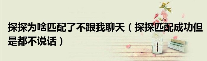 大家好,跳跳为你解答以上问题。探探为啥匹配了不跟我聊天,探探匹配成功但是都不说话这个问题很多人还不知道,现在让我们一起来看看吧!