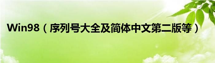 大家好,小太来为大家解答以上问题。Win98,序列号大全及简体中文第二版等很多人还不知道,现在让我们一起来看看吧!
