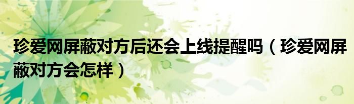 大家好,跳跳为你解答以上问题。珍爱网屏蔽对方后还会上线提醒吗,珍爱网屏蔽对方会怎样这个问题很多人还不知道,现在让我们一起来看看吧!