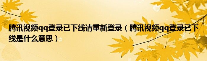 大家好,跳跳为你解答以上问题。腾讯视频qq登录已下线请重新登录,腾讯视频qq登录已下线是什么意思这个问题很多人还不知道,现在让我们一起来看看吧!