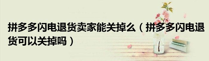 大家好,跳跳为你解答以上问题。拼多多闪电退货卖家能关掉么,拼多多闪电退货可以关掉吗这个问题很多人还不知道,现在让我们一起来看看吧!