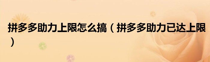 大家好,跳跳为你解答以上问题。拼多多助力上限怎么搞,拼多多助力已达上限这个问题很多人还不知道,现在让我们一起来看看吧!