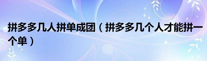 大家好,跳跳为你解答以上问题。拼多多几人拼单成团,拼多多几个人才能拼一个单这个问题很多人还不知道,现在让我们一起来看看吧!