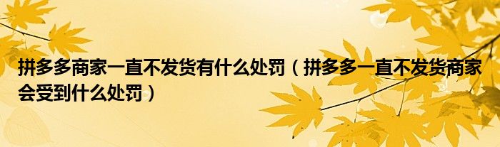 大家好,跳跳为你解答以上问题。拼多多商家一直不发货有什么处罚,拼多多一直不发货商家会受到什么处罚这个问题很多人还不知道,现在让我们一起来看看吧!